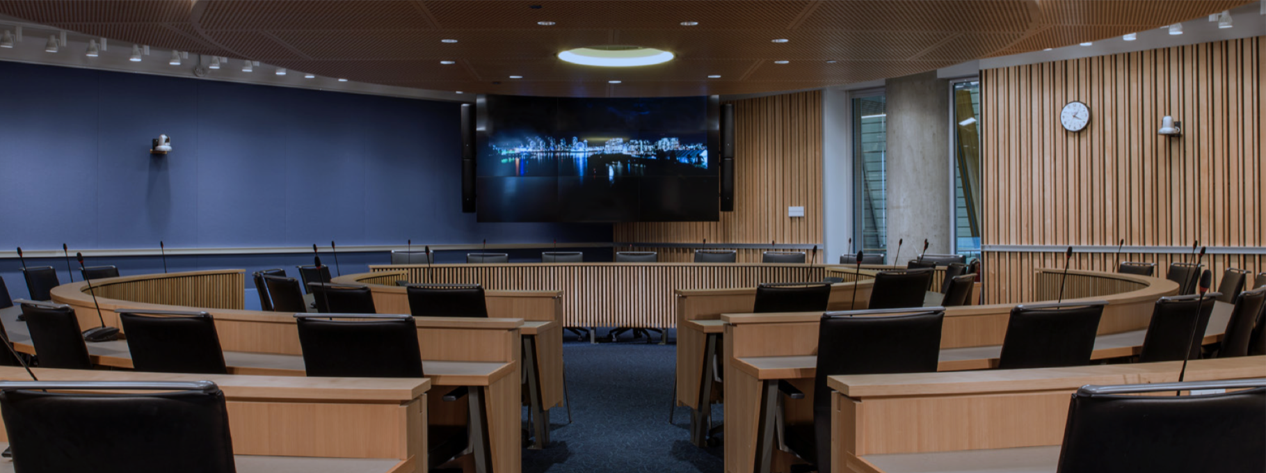 Located on the fourth floor of the Nest, the Michael Kingsmill Forum offers a private space in a classroom style setting, perfectly suited for professional presentations or meetings. This space is ready with AV equipment including a large presentation monitor, as well as microphones for discussion.